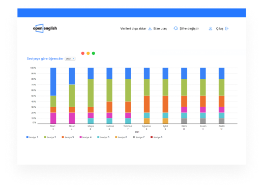 Eğitim sürecinde başarıyı garantilemek için, müşteri deneyimi ekibimizin desteğiyle takımınızın ilerleme sürecini İK Portal üzerinden izleyebilirsiniz. Ayrıca performans gelişimi için stratejiler tasarlayabilirsiniz. Bununla birlikte, çalışanlarınız uygulamalarımızı kullanarak İngilizce geliştirme süreci boyunca gösterdikleri ilerleme ve başarılarını izleyebilirler.