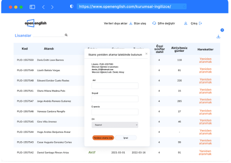 Platformumuz, satın aldığınız lisansları çalışanlarınız arasında hiçbir sınırlama ve ek maliyet olmaksızın yeniden atamanıza olanak tanıyor.